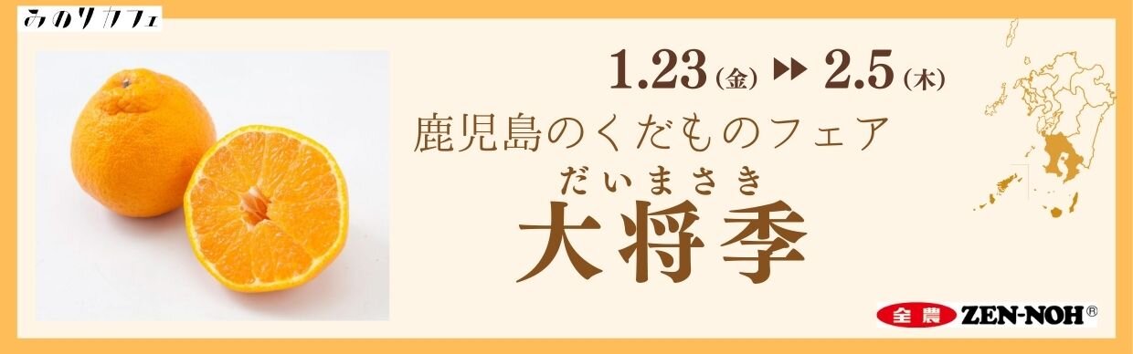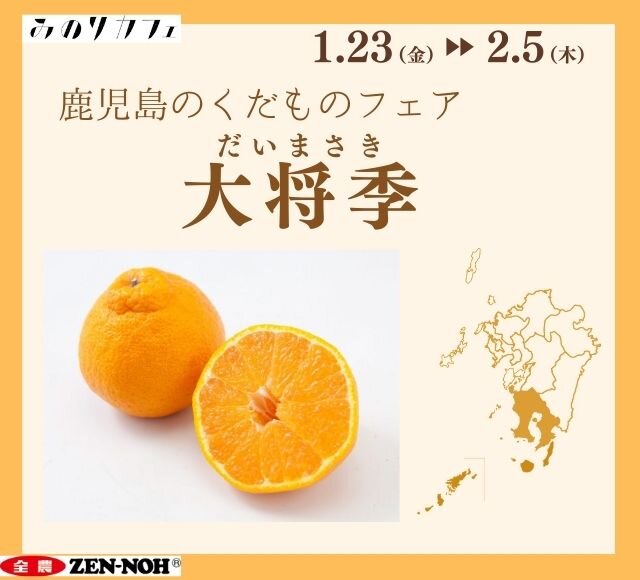 - 2026.01.21 フェア・イベント博多店福岡天神店 ~生産量日本一の鹿児島県からお届け!鹿児島生まれの極上柑橘~ 福岡県の全農直営飲食店舗で「鹿児島県産大将季フェア」を 1月23日(金)~2月5日(木)まで開催